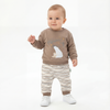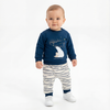 İki iplik pamuklu kumaştan üretilen bu takım, yumuşak dokusu ve nefes alabilen yapısıyla miniklere gün boyu konfor sunar. Cilt dostu kumaşı sayesinde hassas tenlerde rahat bir kullanım sağlar ve hareket özgürlüğü veren esnek bir kalıba sahiptir.