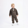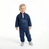 Üst kısmındaki çıtçıtlı yarım düğme detayı ve sevimli köpek nakışı ile şık ve eğlenceli bir görünüm kazandıran takım, günlük kullanımdan oyun saatlerine kadar her an için idealdir..