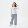Üzerindeki “Happiness Road” yazılı uzun kollu üst ve geometrik desenli pantolon kombinasyonu ile modern ve şık bir görünüm kazandıran takım, günlük gezilerden özel etkinliklere kadar her an için ideal bir tercih sunar.