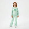 Üst kısmındaki büyük fiyonk baskısı ve kollar ile paçalardaki kurdele detayları ile zarif ve sevimli bir görünüm kazandıran takım, oyun saatlerinden günlük gezilere kadar her an için keyifli bir stil sunar.