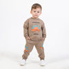 Üst ve alt kısmındaki sevimli stegosaurus baskısı ile eğlenceli bir görünüm kazandıran takım, oyun saatlerinden günlük gezilere kadar her an için keyifli bir stil sunar.