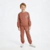 Bu iki iplik pamuklu çocuk takımı, yumuşak kumaşı ve esnek yapısıyla miniklerin gün boyu rahat etmesini sağlar. Omuzdan bileğe ve pantolon yanlarında yer alan beyaz şerit detayları, gri tonuna sportif bir dinamizm katar. Göğüs ve pantolon üzerindeki “My Team” baskısı ise enerjik bir stil sunar.