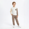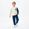 İki iplik pamuklu kumaştan üretilen bu çocuk takımı, yumuşak dokusu ve nefes alabilen yapısıyla miniklere gün boyu konfor sağlar. Esnek yapısı sayesinde hareket özgürlüğü sunar ve cilt dostudur.
